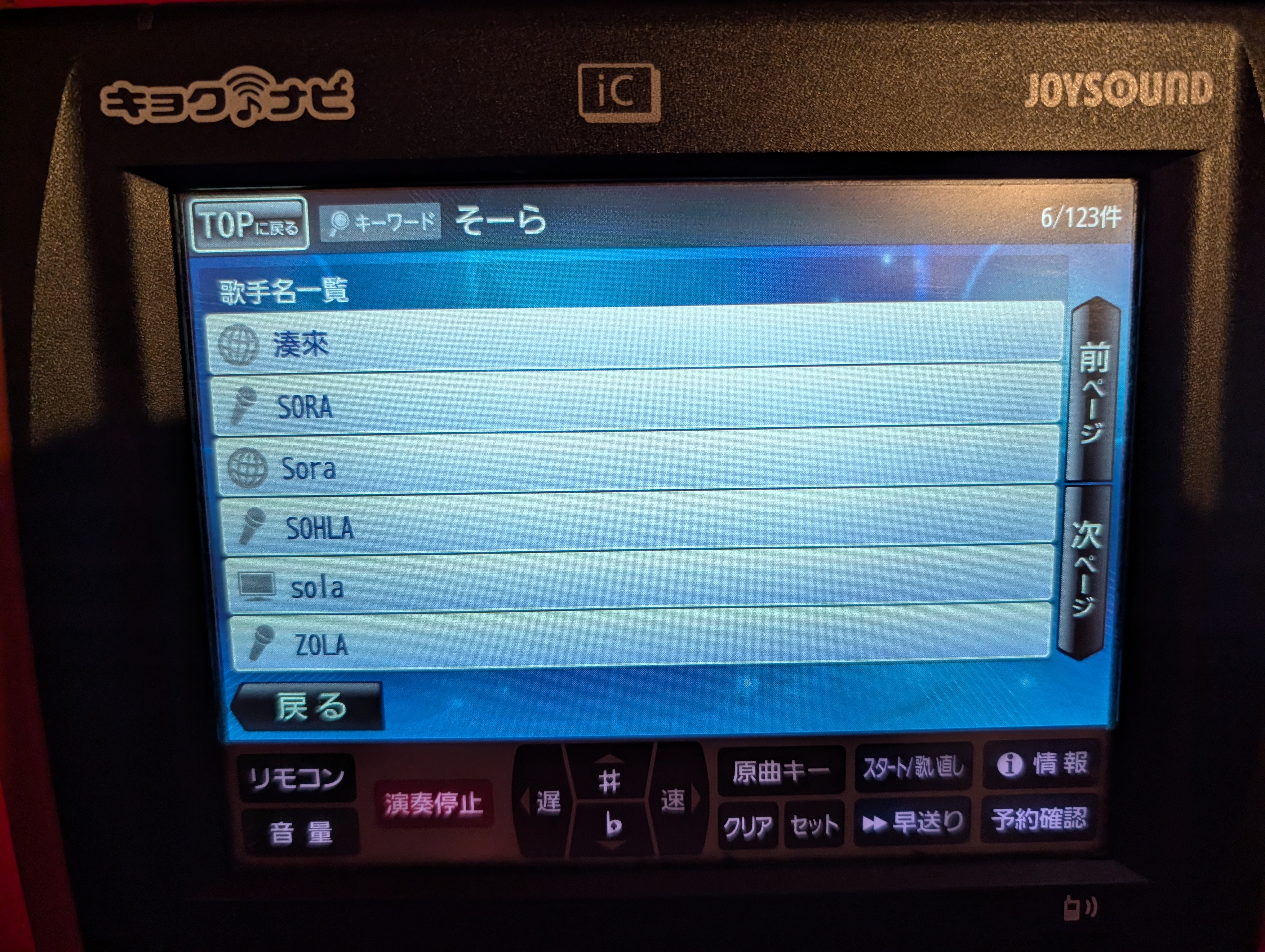 ① 歌手名検索で、