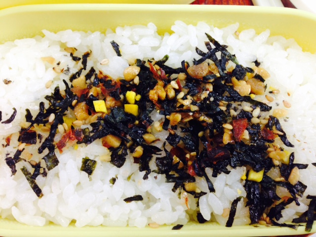 今日は新潟で買った「納豆ふりかけ」をかけたお弁当でした。