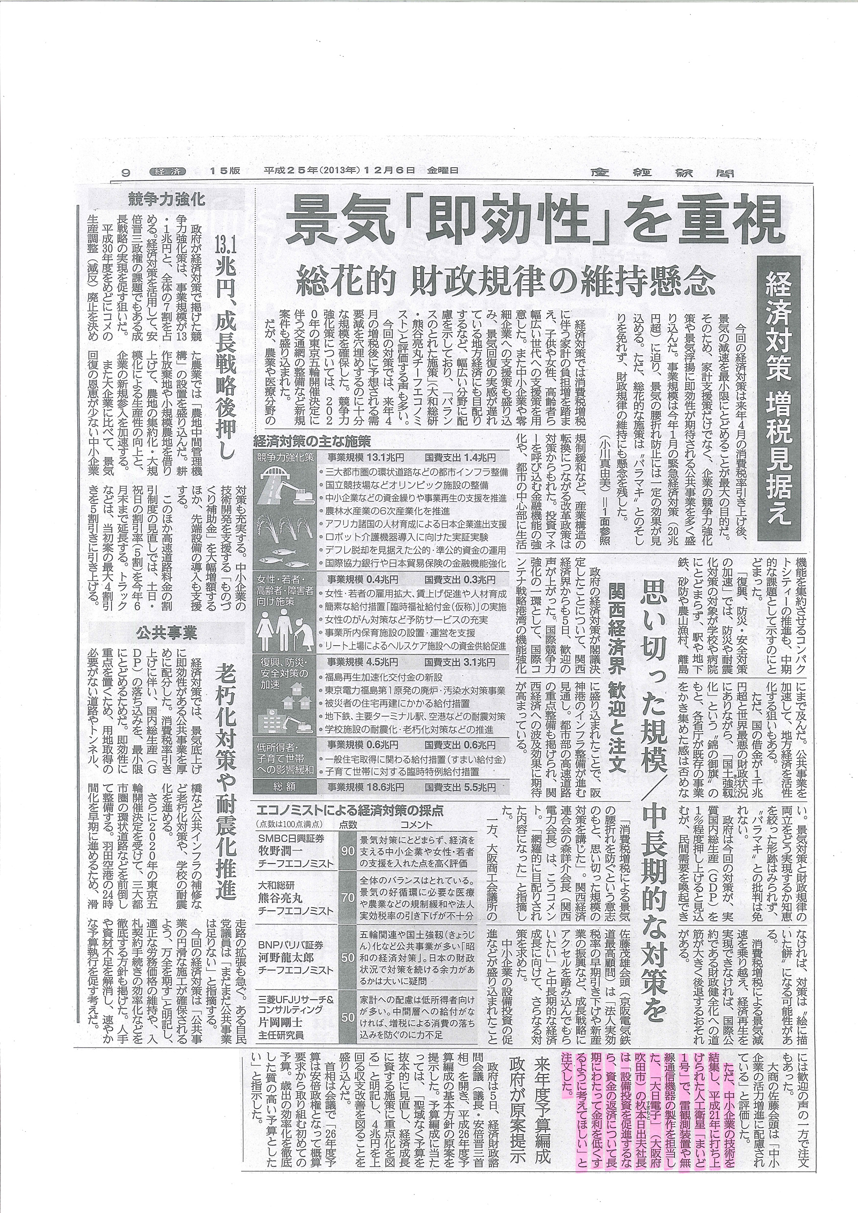 | 2013年12月06日 | 産経新聞 『経済対策 関西経済界 歓迎と注文』 |