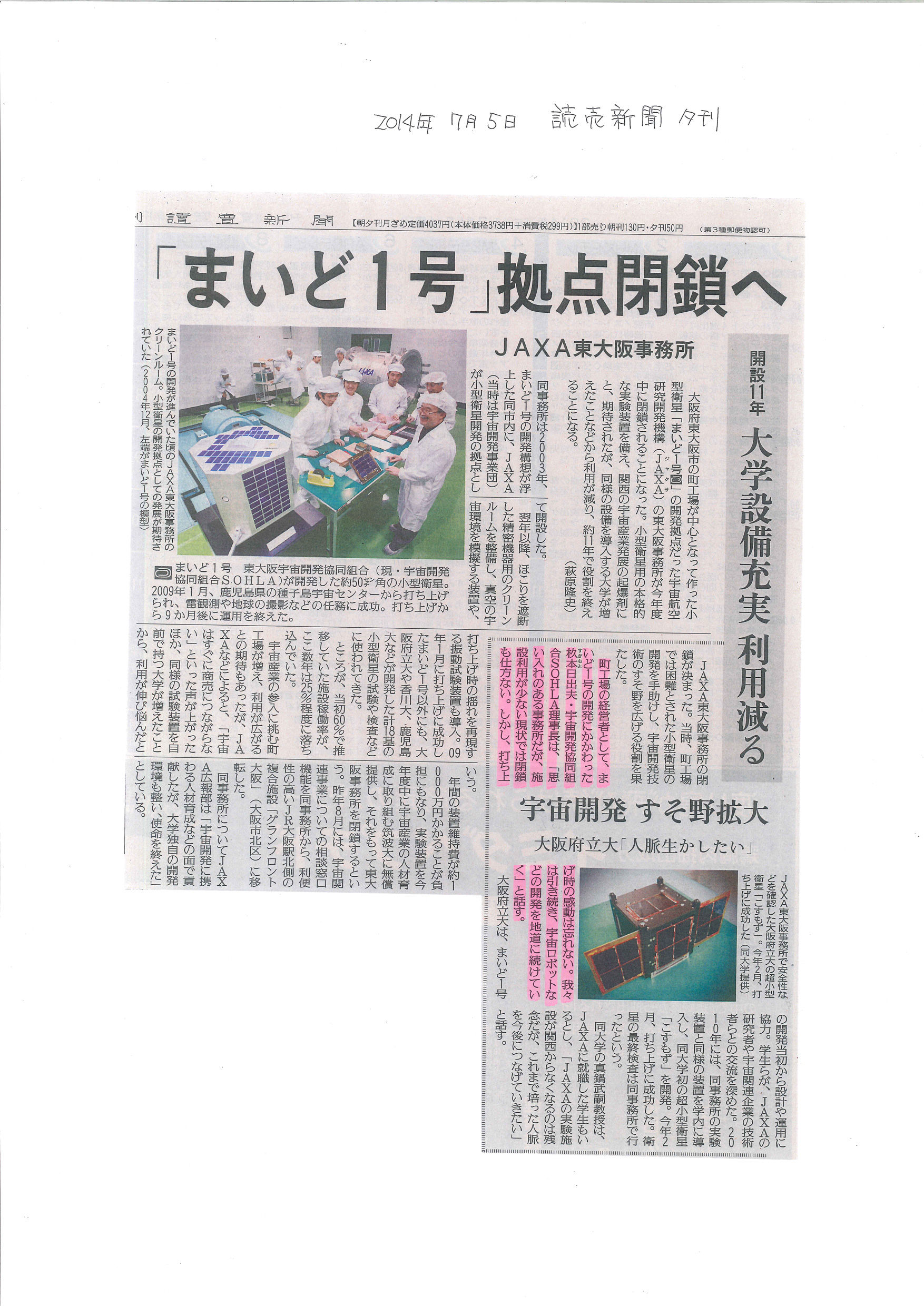 | 2014年07月05日 | 読売新聞 『まいど1号 拠点閉鎖へ』 |
