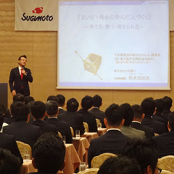 そんな、社員と社長の挑戦する勇気、そして、挨拶・身だしなみ・掃除で人格を磨き上げ、良い製品を造るために社員一人一人が「伝え合うこと」など、講演会では、宇宙という最先端技術への挑戦の中で学んだ、人育ての話をお伝えしています。