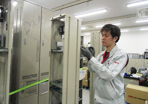 図面を正確に読み解くことと丁寧な作業を心掛けながら、配線や組み立てを行っています。